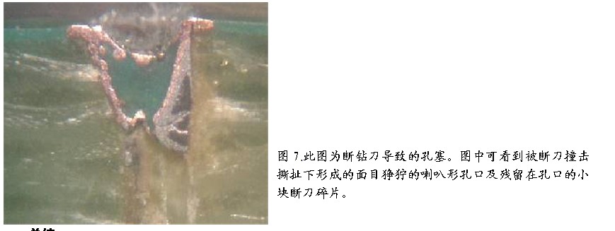 1.依據試驗結果,而不是以傳統(tǒng)的師傅帶徒弟式的經驗確認合理的鉆孔參數(如下刀太快則容易孔塞);