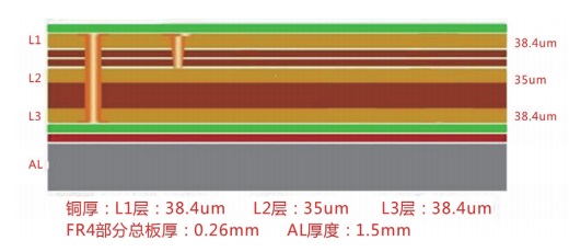 3)L1-L2層介質層要求64-100um,L2-3層間介質層要求50um,L3層與鋁之間為導電膠,總板厚1.8+/-0.05mm,必須選擇合適厚度的介質層;