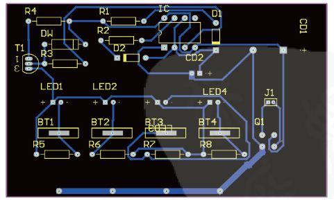 Protel 2004中布線時(shí)首先要設(shè)置好布線規(guī)則,以滿足安全原則等電氣要求。根據(jù)充電器電路的實(shí)際要求,這里設(shè)置安全間距為10mil,頂層布線、普通線寬10mil、電源線20mil、地線30mil.布線采用自動布線,對不合乎要求的地方后可以進(jìn)行手工修改。布線時(shí)在滿足安全原則等電氣要求的前提下,導(dǎo)線要精簡,盡可能短,盡量少拐彎,力求導(dǎo)線簡單明了。