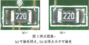 本文研究選取的測試對象2片0805片式電阻為例,通過CCD圖像采集設備,采集到的相應的smt焊點及電阻圖像的如圖2所示: