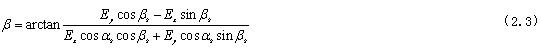 由公式2.2,經過相應的數學計算,可得到偏角 的計算公式: