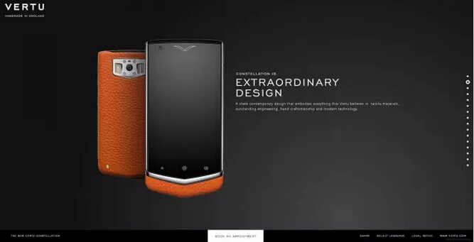 Vertu是諾基亞所成立的全球一家奢侈手機公司,以經營高檔品牌的方式,由世界著名的手機設計師FrankNuovo設計。該品牌的機型從外觀、用料到功能都稱得上有王者風范,平均每款售價更是高達十幾萬元人民幣。2012年,諾基亞將Vertu品牌90%的股權出售給了瑞典投資公司EQT,但易手后的Vertu在銷售上并未獲得大的起色。