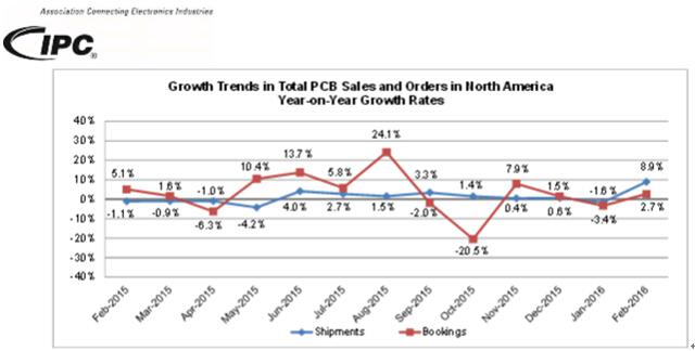2016年2月份北美PCB總出貨量,與2015年同期相比,上升了8.9%;年初至今的出貨量增長3.6%;與上個月相比,增長了10.1%。