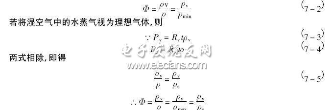 式中,ρmax表示在溫度為t時濕空氣中的水蒸氣可能達到的大分壓力,即ρs。T一定時,ρmax或ρs)相應有一定的值。
