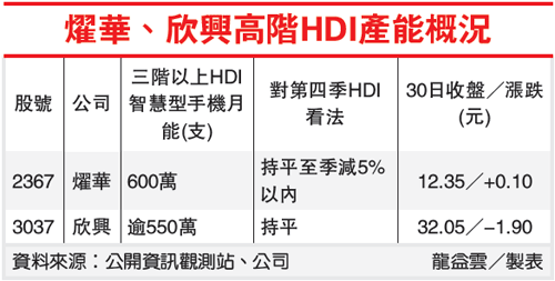PCB廠而言,欣興緊追在后,今年三季含主板加上蓋板約出貨手機8,300萬片,其中主板約八成占6,600萬片,其中五成,約3,300萬片用在智能型手機,三階以上HDI也占智能型手機半數約1,650萬片,相當于單月出貨逾550萬片。